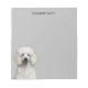 Image of a cute fluffy white Standard Poodle breed type dog with a teddy bear cut and placed in the lower left corner, set on solid pale gray. Personalize with your name or message in black minimalist font.