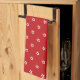 Modern and stylish kitchen towel with white star pattern on bright red.