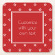 White Stars Pattern on Bright Red Custom Text Square Paper Coaster