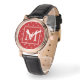 White Stars Pattern on Bright Red Monogram Watch