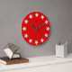 A clock with white stars as numeral markers. The background color is red, but you can customize it to the color of your choice by clicking on the "Customize it" button, and choosing "background" from the edit drop down menu.