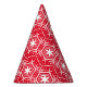 White Stars, Snowflakes, Red festive Holidays Party Hat