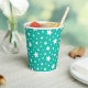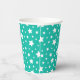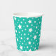 Paper cups featuring a white stars pattern against an editable background colour (click customize, go to the "Auto Warping, Wrap" layer and change the background colour)