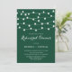 This elegant and whimsical rehearsal dinner invitation features white hanging fairy lights on a green background. Personalize by adding your details. This green rehearsal dinner invitation is perfect for outdoor and fall weddings.