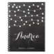 Rustic notebook featuring white string lights and modern calligraphy. This customizable notebook is perfect as a gift.