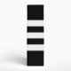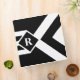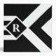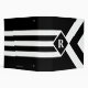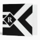 Bold mostly black geometric pattern features three alternating white and black chevrons that end at a black diamond outlined with white. It looks like a stylized medal hanging from a ribbon. The diamond contains a customizable monogram. Three white stripes extend from the bottom of the diamond to the base of the vertical design. The outer thirds of the image are black.