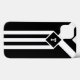 Bold mostly black geometric pattern features three alternating white and black chevrons that end at a black diamond outlined with white. It looks like a stylized medal hanging from a ribbon. The diamond contains a customizable monogram. Three white stripes extend from the bottom of the diamond to the base of the vertical design. The outer thirds of the image are black.