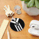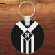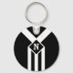 Bold mostly black geometric pattern features three alternating white and black chevrons that end at a black diamond outlined with white. It looks like a stylized medal hanging from a ribbon. The diamond contains a customizable monogram. Three white stripes extend from the bottom of the diamond to the base of the vertical design. The outer thirds of the image are black.