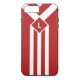 Safeguard your iPhone 8 Plus/7 Plus from shocks with an impact resistant Case-Mate Tough case featuring a stylish geometric pattern with bold white stripes on a red background. Three alternating white and red chevrons end at a red diamond outlined with white. It looks like a stylized medal hanging from a ribbon.
