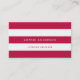 White Stripes and Custom Colour Modern Minimalist business card that features editable background colour on the front (click customize and change the background colour from pink to another colour) and on the back.