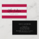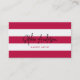 White Stripes and Custom Colour Modern Script business card that features editable background colour on the front (click customize and change the background colour from pink to another colour) and on the back.