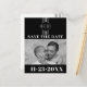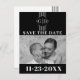 This Save the Date postcard showcases elegant white initials and stripes against a sleek black background, creating a sophisticated and timeless design. The couple's initials are beautifully displayed within a round frame with small hearts on both sides, adding a personal touch to the card. In addition to the stylish design elements, the postcard also includes the wedding date prominently featured, ensuring that guests can mark their calendars well in advance. The photo of the couple adds a warm and personal touch, making the card a cherished keepsake for both the couple and their loved ones.