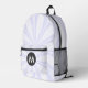 White Sunburst Monogrammed Black Circle Printed Backpack
