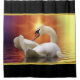 White Swan in a lake with a orange gold sunset. With a black texture background.