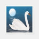 WHITE SWAN FLOATING IN WATER WITH A FULL MOON