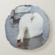 White swans symbolize love, devotion, beauty and grace. Round pillow featuring a peaceful winter scene will be an elegant accent to your home's decor or a stylish gift for any occasion (Saint Valentine's Day, Mother's day, Grandparents Day, birthday).