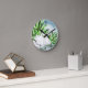 A pair of white swans in water among tall grass featured on these wall clocks.