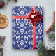 White Swedish Dala Horse Blue Holiday Gift Wrap
