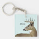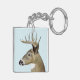 A pastel drawing of a majestic white tail buck adorns this customizable keychain!