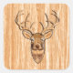 White Tail Deer Head Wood Inlay Grain Style Square Sticker