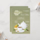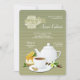 A tea party invitation featuring a white teapot, cup and saucer, next to an orange topped cheese cake. (<a href='https://www.freepik.com/free-vector/tea-party-poster_1530872.htm'>Designed by Freepik</a>). <br/><br/>The card is easy to customize with your wording, font, font colour and choice of six paper types.<br/><br/>Not exactly what you're looking for? All our products can be custom designed to meet your needs at no extra charge.<br/><br/>Simply contact us at askcottonlamb@gmail.com<br/><br/>Coordinating products available: