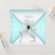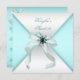 Pretty teal blue and white jewel bow teal blue sweet sixteen birthday party invitation. Add your details to the front and back by simply choosing the orange "Customize it!" button to begin adding your event details, font style, font size & colour, and wording. Please note - all of the invitation designs you will find on Zazzle are printed graphics with no actual jewels, bows, raised, embossed, or added parts or pieces.