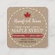 An old-fashioned maple syrup business card to promote your traditionally-made pure local maple syrup. Red sugar maple leaf on simulated kraft background.