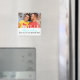 It was a bit smaller than expected, but I was too excited to check dimensions. The product itself send well printed though the grey text is a bit paint. Magnet worked perfectly on my fridge.