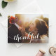 Show your appreciation in style with our elegant customizable photo wedding thank you postcard, prominently featuring the word "thankful" in stunning modern calligraphy. This postcard beautifully combines personal touches with sophisticated design, making it the perfect way to express your gratitude to your guests.