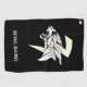 This golf towel for him features a roaring tiger head tribal in white with a yellow thunderbolt on a black background.