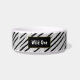 Stylish kitty food dish done with graphics of a black and white tiger striped fur print, around the dish, and a gold tone edged black text area, in the middle, for your pet's name. White text allows you to customize with your pet's name, for a personalized bowl your feline friend can be proud of. Makes the purrfect gift idea.