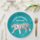 White Tiger Teal, Turquoise Blue Personalized Paper Plate