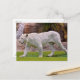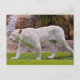 White tiger walking on grass postcard