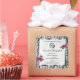 Make a lasting impression with this elegant and modern product label design featuring a white coloured natural tree bark and wood grain with a pretty silver frame and cute pink butterflies.