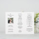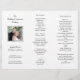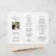 Tri-fold wedding program template with photo of the couple. White paper with black text will be folded like an accordion after purchase. Print three sections and upload a picture which will appear on the front. Simple, neutral palette will match any wedding theme.