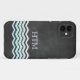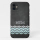 White and turquoise chevrons on a chalkboard background decorate this iPhone 5 case. The monogram can easily be changed to a full name or deleted if preferred.