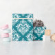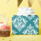 Elegant white vintage floral damask seamless pattern over turquoise blue background you can change.