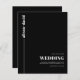 This black BUDGET wedding invitation is a perfect blend of modern and minimalist design. The white chic typography adds a touch of elegance to the overall look. The spacious layout and clean aesthetic make it visually appealing. On a black background, a white vertical line on the left side creates an interesting visual element. The couple's names are cleverly incorporated, extending upwards, adding a personalized touch. With minimal text, the invitation focuses on the bold, white word 'WEDDING' and essential details, making it easy to read and understand. To make RSVP convenient, the back of the invitation includes a QR code for online response.