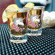 White Unicorn Flowers Pink Black Shot Glass
