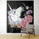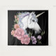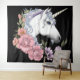 White Unicorn Flowers Pink Black Tapestry