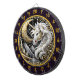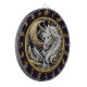Enhance your game room with this elegant dartboard featuring a white unicorn under a glowing golden moon. The intricate artwork and harmonious white and gold tones create a stunning focal point that embodies grace, imagination, and resilience.