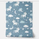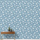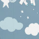 Perfect for a baby nursery, this wallpaper has repeating images of a little white unicorn with blue mane and tail. In the background are lots of stars, clouds, and a crescent moon. Cute for a baby boy or girl.