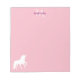 A fantasy unicorn in white.  Pastel pink background colour. Template for Your name an monogram letter in white and purple.