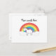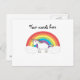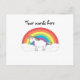 White unicorn on rainbow and clouds postcard