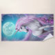 White Unicorn with Purple Flowers & Moon Beach Towel