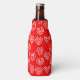This bottle cooler has a mid-century modern Valentine’s design of scattered white heart mazes on a field of red.