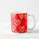 This mug has a mid-century modern Valentine’s design of scattered white heart mazes on a field of red.
