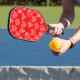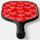 This pickleball paddle has a mid-century modern Valentine’s design of scattered white heart mazes on a field of red.