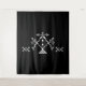 Tapestry with a white veve of Damballah on a black background. Customizable. Damballah represents the creator of life and is the loa of cosmic equilibrium, the mind, and intellect.