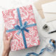 White vintage damask on pink background wrapping paper